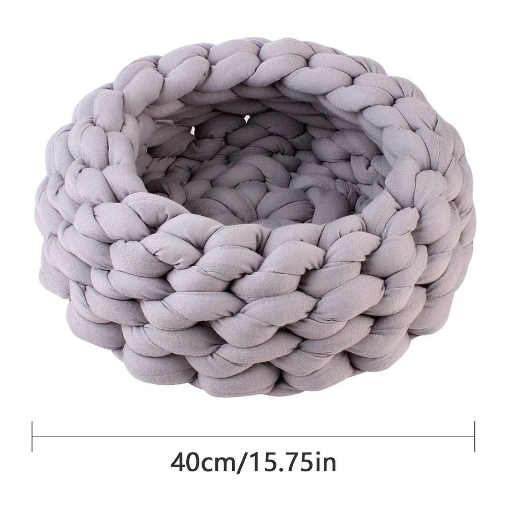 Foldable Chunky Braid Knit Crochet Handmade Enclosed Hideout Perch Cave Pet Bed for Small Cat Dog