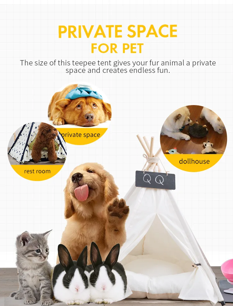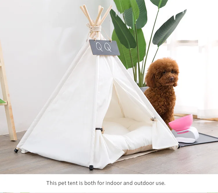 Hot Sale Soft Warm Comfortable Pet Teepee Dog Tent High Quality Cushion Foldable Pine Poles Rectangle Shape Fashionable Design