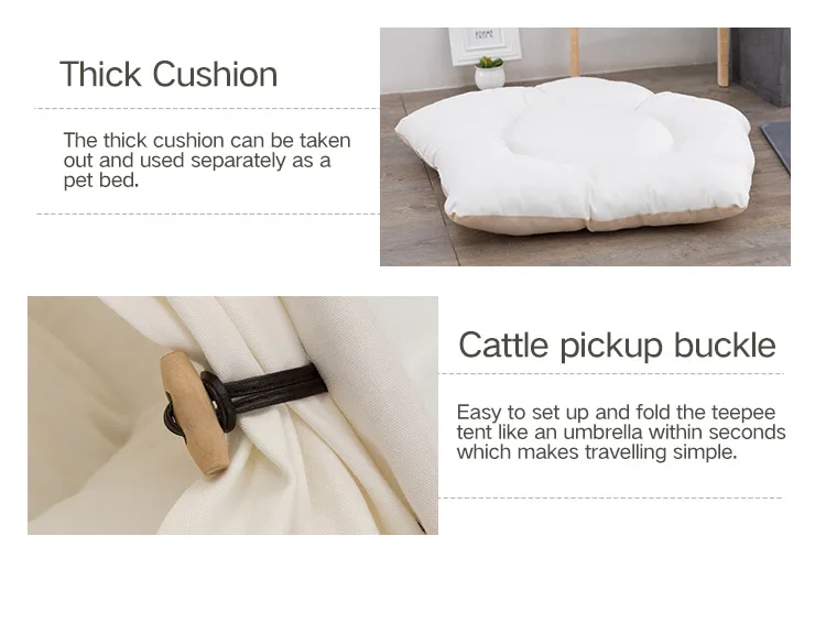 You are here: Home » Products » Pet Beds & Accessories » Soft Pet Beds » Hot Sale Soft Warm Comfortable Pet Teepee Dog Tent High Quality Cushion Foldable Pine Poles Rectangle Shape Fashionable Design